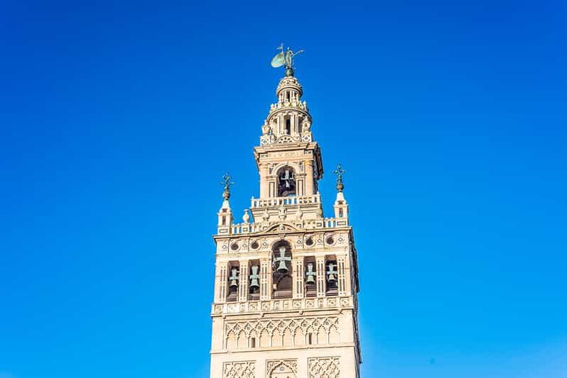 Le terme Giralda provient de la girouette en bronze, dénommée El Giraldillo, qui orne le sommet. Installée à la fin du XVIe siècle, elle symbolise la Foi victorieuse et protège symboliquement la ville. Cette sculpture singulière rappelle l’importance spirituelle, historique et artistique de la tour, icône indissociable du paysage sévillan.