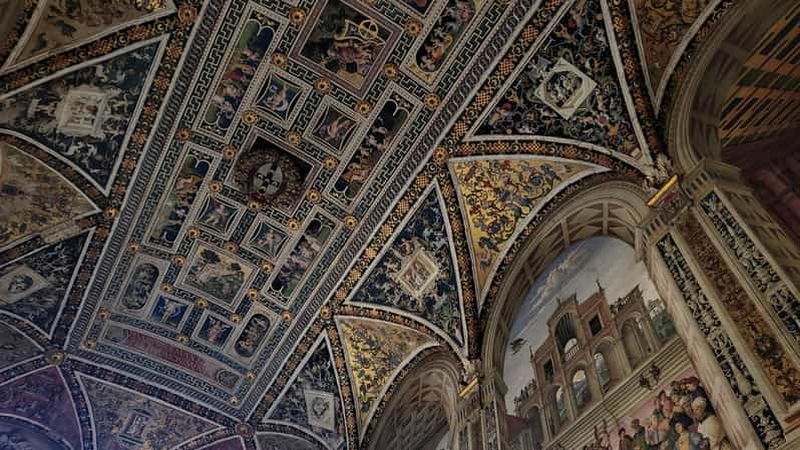 La Bibliothèque Piccolomini, édifiée au début du XVIe siècle, rend hommage au cardinal Francesco Piccolomini devenu le pape Pie III. Son décor somptueux est signé du Pinturicchio, qui y a peint des fresques colorées retraçant la vie et les triomphes du pape Pie II. Vous observerez aussi des livres anciens et des enluminures. Cet écrin raffiné, niché dans la Cathédrale, constitue une étape inoubliable pour tout passionné d’histoire et d’art.
