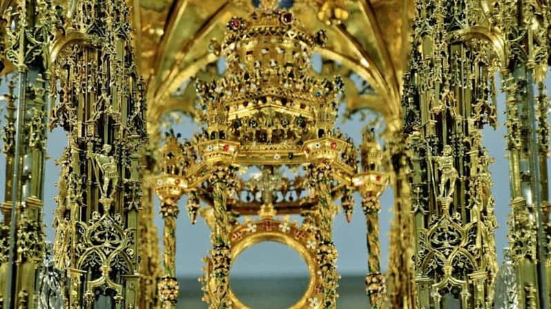 Le Trésor de la Cathédrale se trouve dans une salle fortifiée où sont conservés les objets sacrés les plus précieux. L’un des bijoux les plus admirés est la monstrance d’orfèvrerie, pièce monumentale créée au XVIe siècle puis enrichie au siècle suivant. Composée d’or, d’argent et de pierres précieuses, son raffinement témoigne de la maîtrise des artisans de l’époque. Les visiteurs peuvent y contempler calices, ciboires et reliquaires de grande valeur historique et artistique.