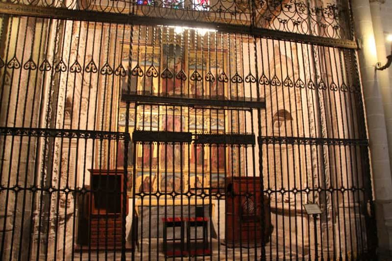 Le chœur de la Cathédrale, aménagé entre le XVe et le XVIe siècle, est réputé pour son ensemble exceptionnel de stalles en bois de noyer. Les sculptures, réalisées par des maîtres tailleurs flamands et castillans, représentent des scènes bibliques, des figures de saints et des événements historiques. Leur finesse révèle l’excellente maîtrise de l’artisanat de l’époque. Vous remarquerez également la délicatesse des miséricordes, rehaussements rabattables aux motifs arrangés avec un rare souci du détail.