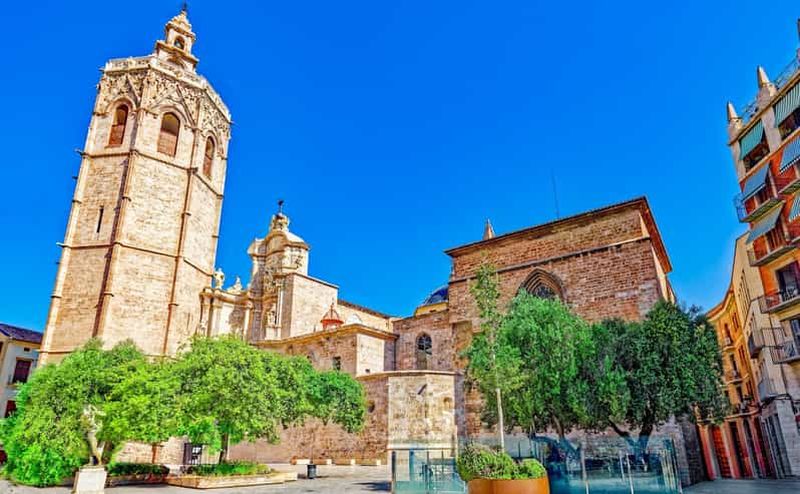 La Cathédrale de Valence, située sur la Plaza de la Virgen, est un point central de la vieille ville, idéalement accessible à pied. Depuis la Plaza del Ayuntamiento, elle se trouve à seulement 10 minutes à pied, offrant une promenade agréable à travers les ruelles historiques. En venant du Mercado Central, l’un des plus grands marchés d’Europe, marchez environ 7 minutes pour rejoindre la cathédrale. Si vous venez de la Torre del Micalet, qui est adjacente, il vous suffira de quelques pas pour atteindre votre destination, rendant la cathédrale facilement intégrée à toute visite du cœur de Valence.