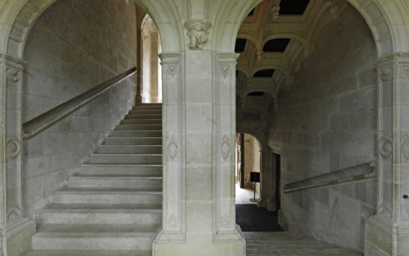 Le grand escalier de la façade retient l’attention par sa conception singulière inspirée des palais italiens. Sa rampe droite, exceptionnelle pour l’époque, illustre l’influence transalpine dans l’architecture française de la Renaissance. Remarquablement préservé, cet ouvrage symbolise l’audace novatrice des commanditaires, soucieux d’affirmer un style unique dans le Val de Loire.