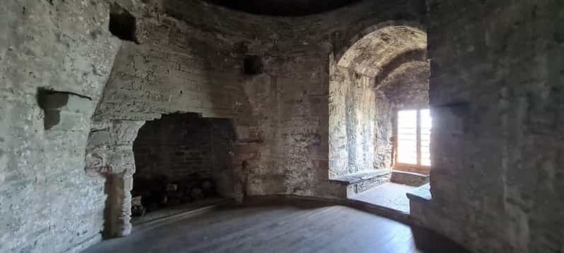 Située au cœur du château, la grande salle date de la fin du XIIIe siècle et servait de lieu de réception aux invités. Vous y apprécierez l’ampleur de cet espace, conçu pour impressionner par son architecture et sa hauteur sous plafond. Autrefois ornée de tapisseries et de mobilier somptueux, cette salle accueillait banquets royaux et cérémonies importantes. Son acoustique remarquable permettait l’organisation de divertissements musicaux.