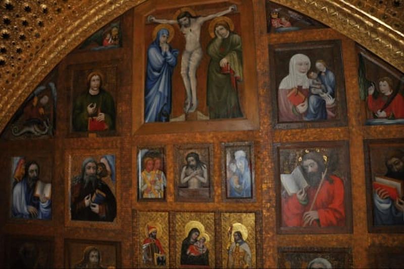 La Chapelle de la Sainte-Croix, nichée dans la partie supérieure de la Grande Tour, est un joyau spirituel conçu par Charles IV. Achevée au XIVe siècle, elle abrite un décor exceptionnel, orné de pierres semi-précieuses et d’or fin sur les murs. Les fresques retracent la passion du Christ, offrant un contraste saisissant avec l’austérité extérieure. Réservée au recueillement impérial, elle constitue un point fort incontournable pour les passionnés d’art sacré.