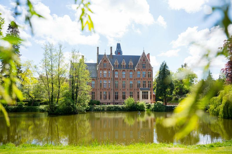 Construit entre 1859 et 1862, le Château de Loppem est un exemple remarquable de l’architecture néogothique flamande, imaginée par l’architecte Jean-Baptiste de Béthune. Son allure médiévale est sublimée par des tourelles élancées, des façades finement sculptées et des vitraux colorés. En vous promenant autour de ses douves, vous admirerez la symbiose parfaite entre l’esthétique romantique et le savoir-faire belge du XIXe siècle.