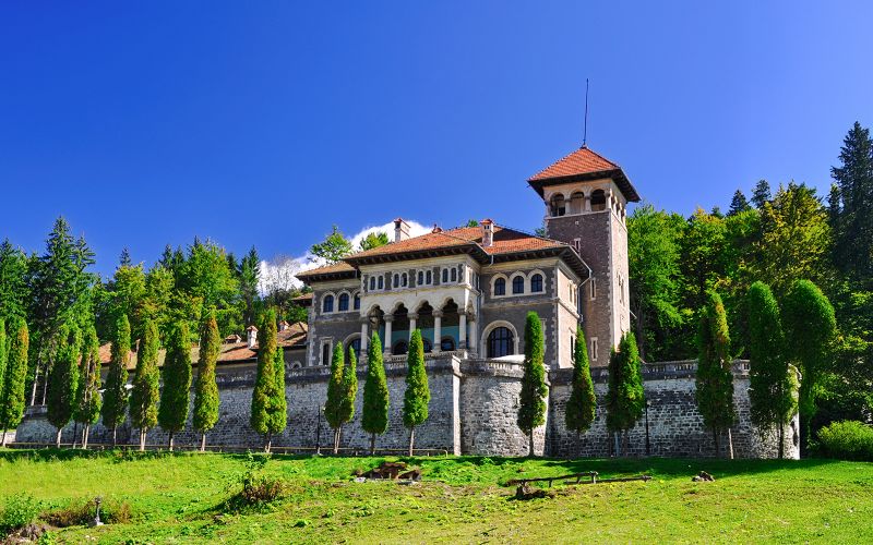 Autour du Château, admirez la somptueuse façade néo-Renaissance, achevée sous le règne du roi Carol Ier au XIXe siècle. La cour d’honneur, ornée de sculptures délicates, constitue un parfait aperçu du faste royal. Les jardins et terrasses, soigneusement entretenus, offrent un panorama enchanteur sur les montagnes environnantes. Vous pourrez y prendre de magnifiques photos et ressentir la sérénité qui imprègne l’ensemble du domaine, faisant de cette étape une introduction mémorable.