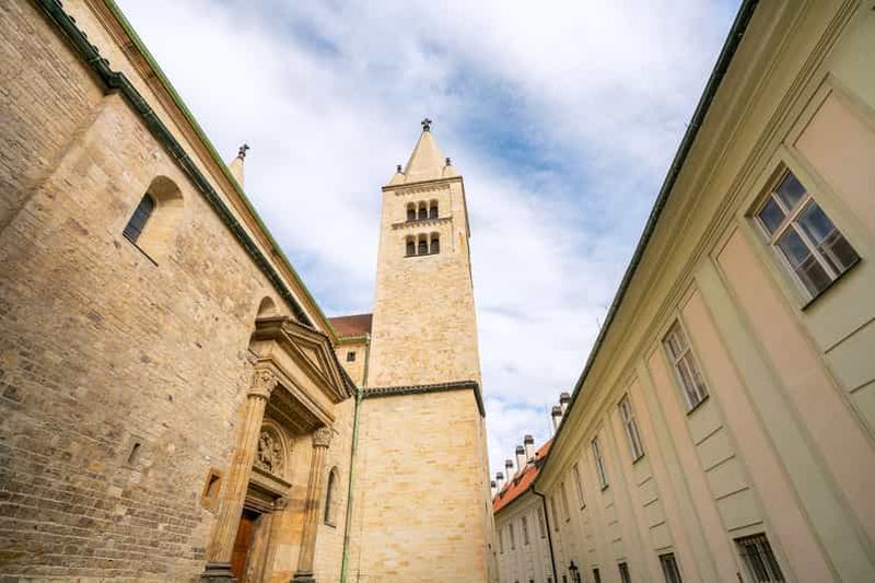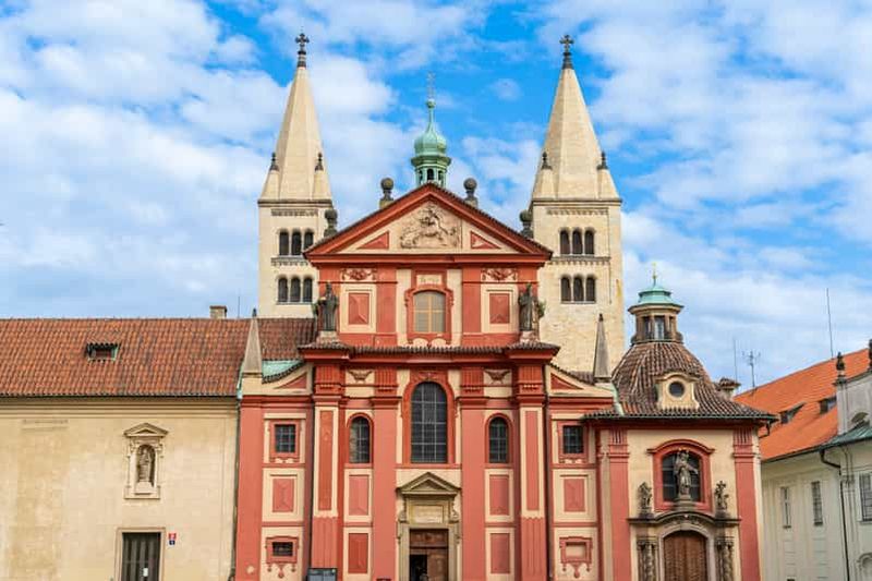 La basilique Saint-Georges, fondée au Xe siècle, est la deuxième plus ancienne église du complexe. Son style roman épuré, orné d’éléments gothiques, retrace l’évolution architecturale de Prague. L’intérieur sobre contraste avec la façade rouge, ajoutée à la Renaissance. Cette basilique renferme les sépultures de la dynastie Přemyslide, soulignant son importance historique. En visitant ce lieu, vous percevrez la sérénité qui imprègne ses murs et la grande richesse du passé tchèque.