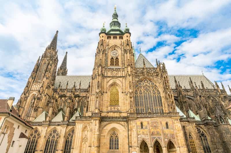 La cathédrale Saint-Guy, érigée à partir du XIVe siècle, domine l’ensemble du Château. Son architecture gothique impressionnante, riche en vitraux colorés, témoigne du talent de maîtres tels que Peter Parler. Vous y découvrirez la somptueuse chapelle Saint-Venceslas, où repose le saint patron de la Bohême. Prenez le temps d’admirer la tour principale qui offre un panorama imprenable sur Prague et son riche patrimoine. Son entrée reste un joyau pour tous.