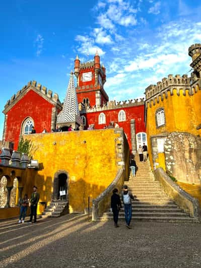 Érigé au XIXe siècle sur les ruines d’un ancien monastère, le Palais de Pena incarne à merveille l’architecture romantique européenne. Son mélange audacieux de couleurs et de styles architecturaux évoque un conte de fées. Depuis ses terrasses, vous profitez naturellement d’une vue imprenable sur la verdoyante végétation environnante de Sintra.