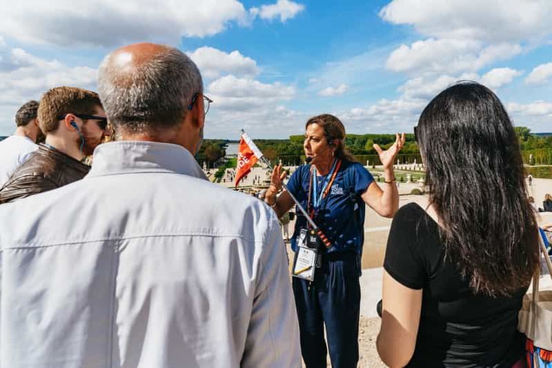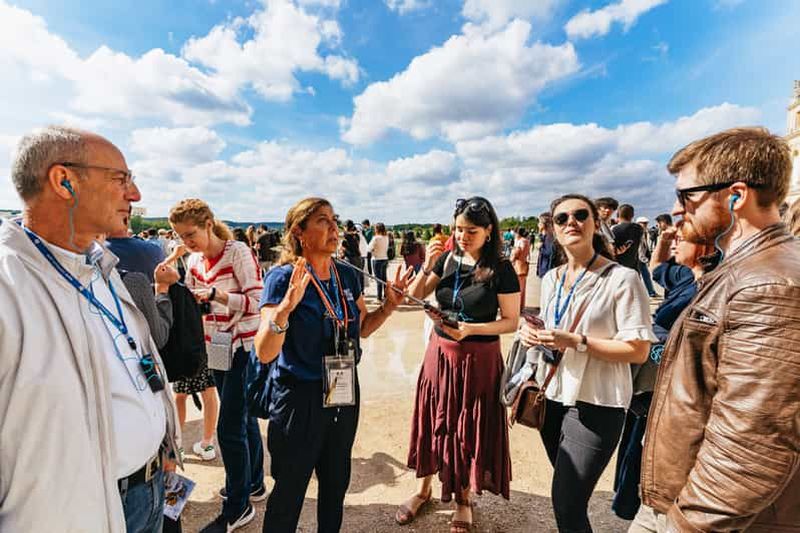 Comprend une visite guidée du château avec un guide (1,5 h) et l’accès aux jardins. N’inclut pas l’accès au domaine de Marie-Antoinette. Nous vous recommandons de réserver un créneau dans l’après-midi pour éviter la foule du matin à Versailles.