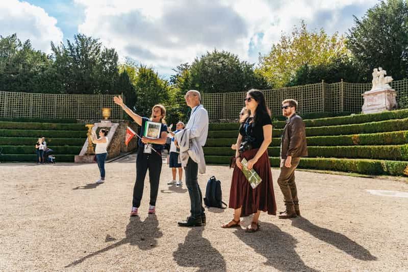Comprend une visite guidée du château (1h30) et l'accès aux jardins et au domaine de Marie-Antoinette (Trianon) (environ 3h30).