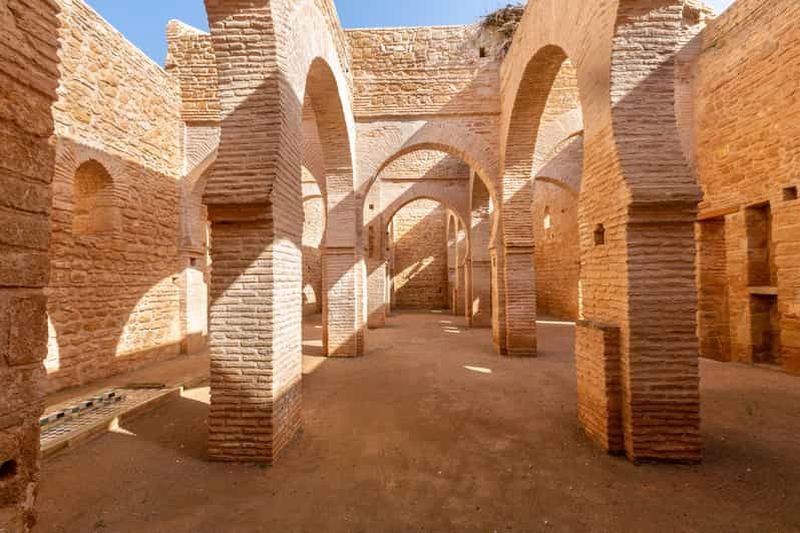 Bâties à l’époque des Mérinides vers le XIVe siècle, les fortifications médiévales protègent encore fièrement l’ancienne cité de la Chellah. Ces imposants remparts sont dotés de bastions et de portes aux arcs finement décorés, attestant du savoir-faire architectural de l’époque. En parcourant ces murailles, vous percerez les secrets défensifs qui assuraient la sécurité du site. N’hésitez pas à observer les détails sculptés, témoins précieux du raffinement artistique et technique médiéval.