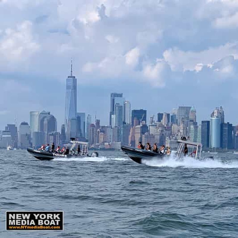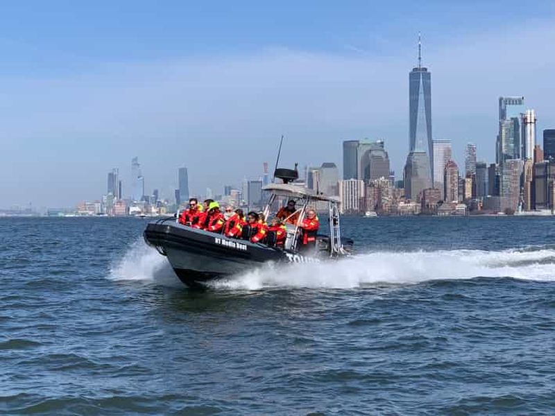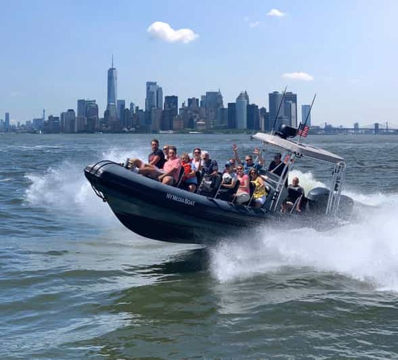 Explorez le port de New York à bord d'un bateau rapide de style militaire lors d'une visite touristique avec narration. ...