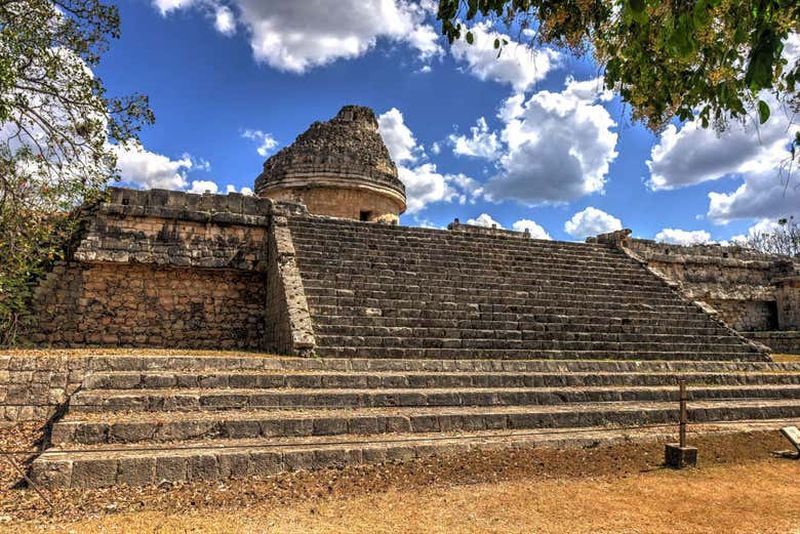 L’observatoire El Caracol illustre la maîtrise astronomique maya. Aligné sur divers phénomènes célestes, notamment les équinoxes et solstices, il servait à calculer le passage du temps et à établir un calendrier agricole précis. Sa forme en spirale souligne la quête de comprendre les mouvements cosmiques au cœur de la civilisation.