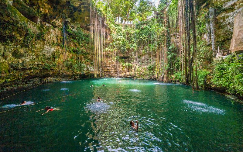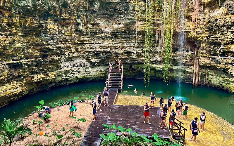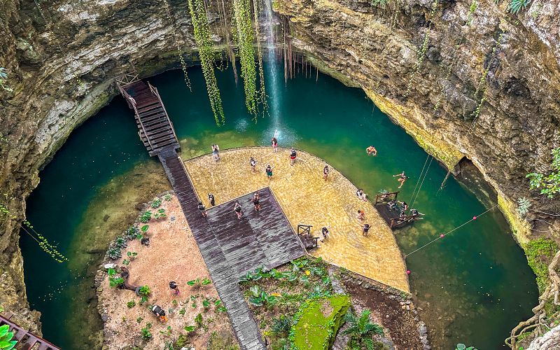 Sous ce site majeur, un réseau de quatre cénotes interconnectés témoigne de son rôle rituel pour les Mayas. Reliées par des canaux naturels, ces sources d’eau offraient un accès privilégié au monde souterrain, considéré comme sacré. Les offrandes et cérémonies y renforçaient le lien entre les hommes et les dieux.