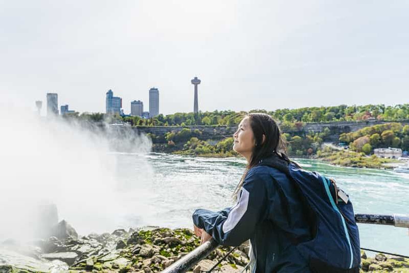 Cette option de visite n'inclut pas la sortie en bateau Maid of the Mist. Les voyageurs qui sélectionnent cette option profiteront de tous les autres arrêts touristiques et expériences guidées prévus dans le cadre de l'excursion, à l'exception de la sortie en bateau Maid of the Mist.
