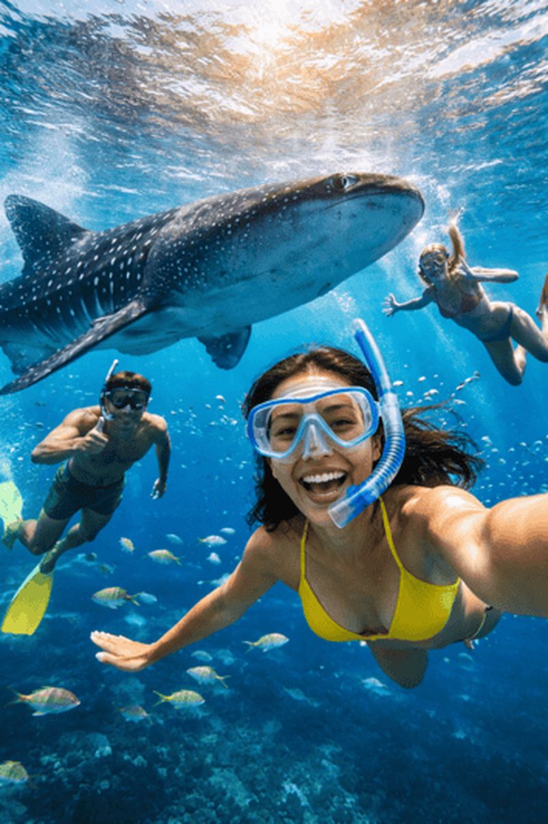 Nagez avec les gentils requins-baleines géants, des créatures magnifiques, et vivez une expérience étonnante sur l'île d...