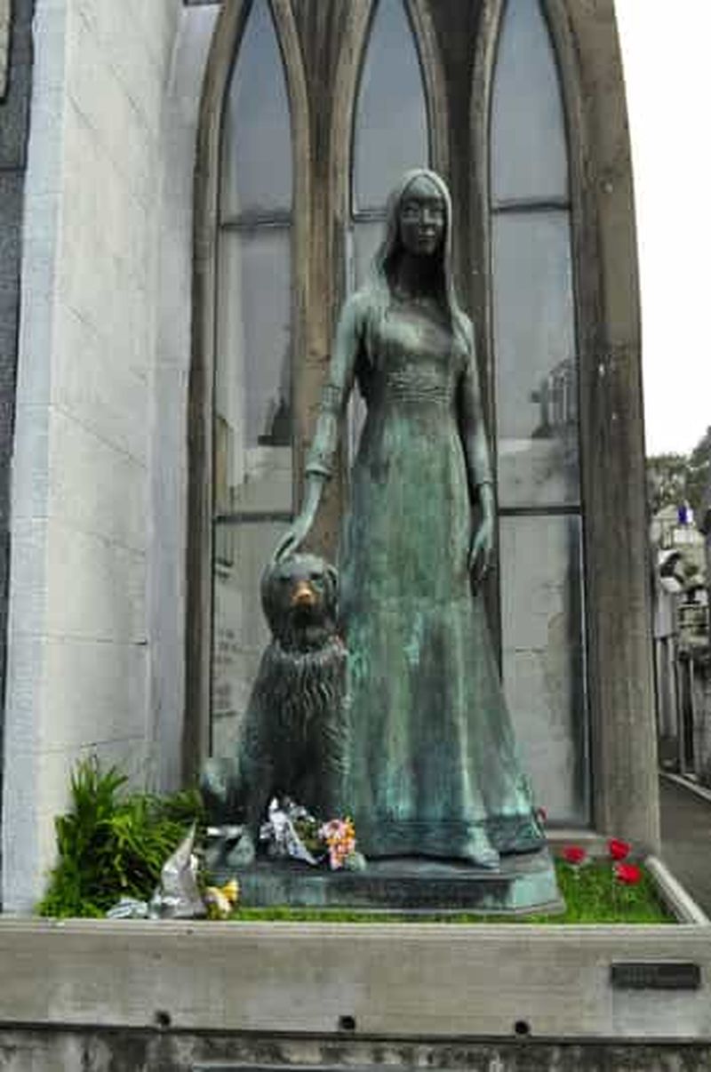 La tombe de Rufina Cambaceres date de 1902, année où cette jeune femme de la haute société argentine fut déclarée morte à seulement 19 ans. La légende raconte qu’elle aurait été enterrée vivante, ce qui nourrit encore de nombreuses histoires macabres. Son mausolée de style Art nouveau intrigue par sa statue représentant Rufina tentant d’ouvrir la porte.