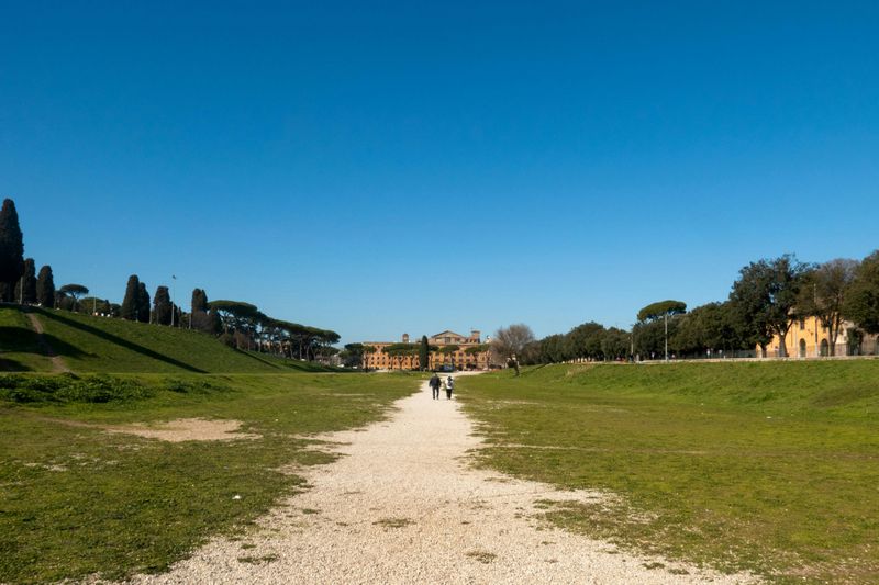 Plus vaste stade de la Rome antique, le Circus Maximus s’étendait dans la vallée entre le Palatin et l’Aventin et pouvait accueillir près de 250 000 spectateurs. Aménagé de pierre et de marbre, il fut durant des siècles le théâtre des courses de chars, des triomphes et des fêtes publiques qui rythmaient la vie romaine. Aujourd’hui, il n’en reste qu’un large espace vert et quelques vestiges suggérant l’ampleur de ce lieu mythique.
