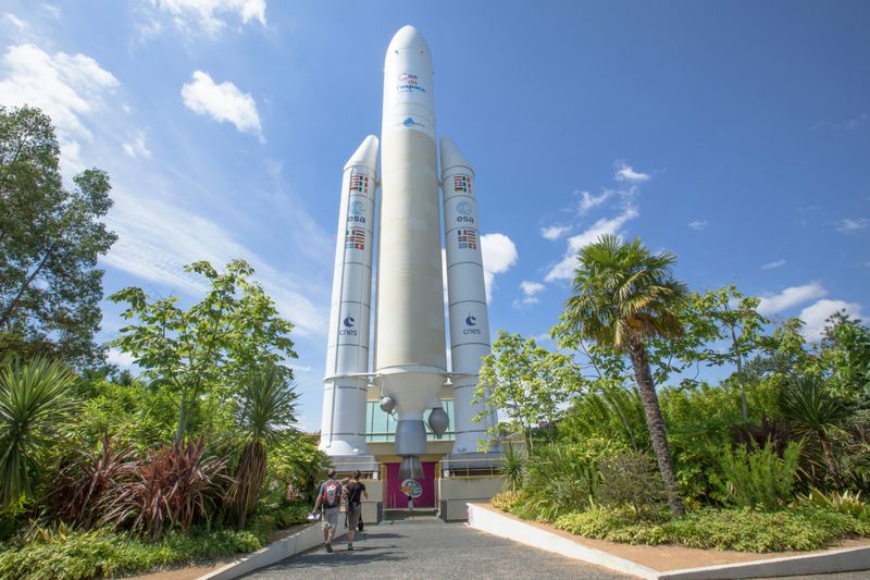 Une maquette à l’échelle 1 de la fusée Ariane 5, haute de 53 m, s’élève fièrement à l’entrée du site. Héritage du programme européen de lanceurs spatiaux, elle illustre la coopération internationale et les prouesses d’ingénierie. Sa présence grandiose rappelle le rôle clé et essentiel de l’Europe dans l’exploration et l’autonomie spatiales.