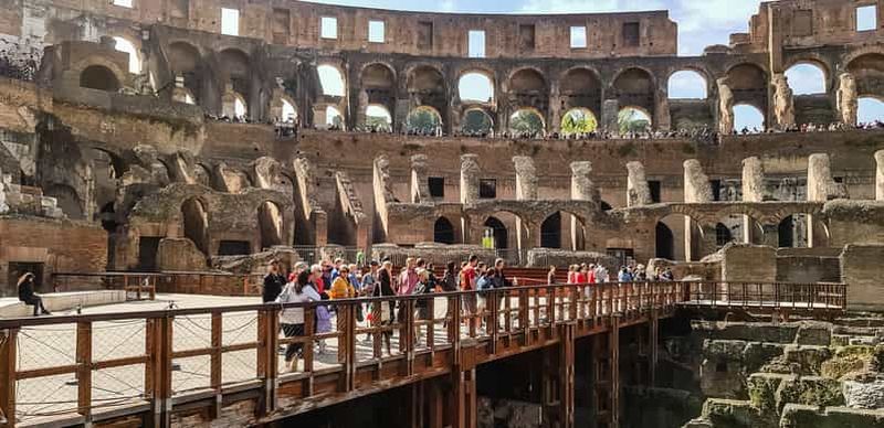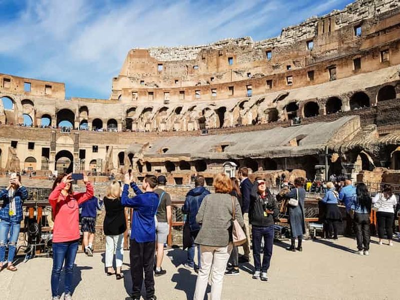 Profitez d'une entrée guidée au Colisée avec accès à l'arène. Suivez un guide à travers le Colisée, le Forum romain et le mont Palatin.