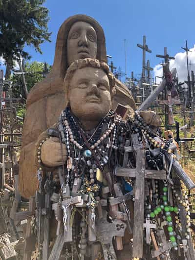 Des sculptures religieuses en bois témoignent de l’artisanat lituanien et du rôle clé de l’expression artistique dans la foi de la région. Elles représentent des saints, des anges ou des scènes bibliques. Certaines datent du début du XXe siècle. Vous les apercevrez dispersées sur toute la colline, ajoutant une touche artistique au site. Leurs détails sculptés, parfois rehaussés de peinture, vous laisseront sans voix.