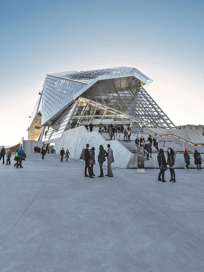 Signé Jakob+MacFarlane, l’Orange Cube attire par sa couleur vive et sa structure perforée. Construit en 2010 sur les docks de Saône, il abrite des bureaux, commerces et terrasses. À photographier depuis les quais pour ses reflets saisissants sur l’eau.