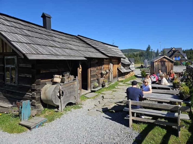 Profitez d'un voyage inoubliable à Zakopane : prise en charge à l'hôtel, visite de Chochołów avec dégustation de fromage oscypek, promenade à Zakopane et téléphérique jusqu'à Gubałówka pour une vue imprenable sur les Tatras.