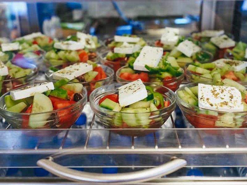 Réservez cette croisière avec billet et déjeuner. Le déjeuner au restaurant-bar du navire (self-service) comprend un plat principal au choix (p. ex. poulet avec pommes de terre ou porc avec riz ou tomates farcies, etc.), une salade grecque et une bouteille d'eau de 750 ml.
