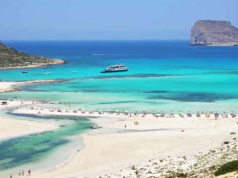 Profitez d'une excursion en bateau vers la lagune de Balos et l'île de Gramvousa. Nagez dans des eaux émeraude, partez e...