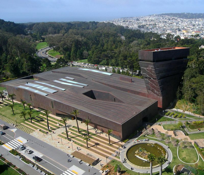 L’édifice actuel du De Young Museum, œuvre des architectes Herzog & de Meuron, a ouvert ses portes en 2005. Reconnaissable à sa façade en cuivre, il se fond dans la végétation environnante en offrant une silhouette contemporaine. Au fil du temps, la patine évolue et confère un caractère unique à la structure. Cet ensemble architectural témoigne de l’engagement de la ville pour la préservation de l’art et de la modernité.