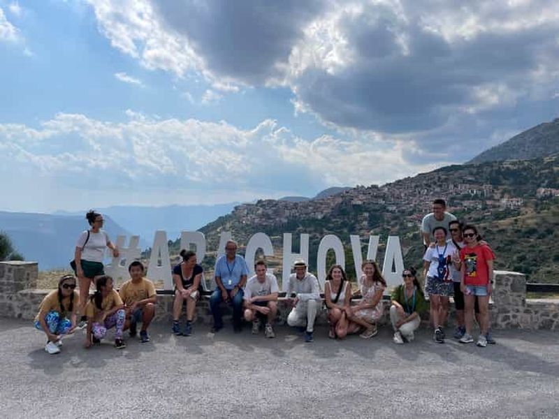 Cette option comprend une visite guidée de 2,5 heures sur le site de Delphes, SANS billets d'entrée pour le site archéologique et le musée et SANS déjeuner.