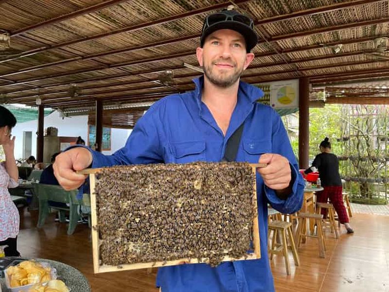 Au cœur des villages du Mékong, plusieurs ateliers artisanaux perpétuent des savoir-faire transmis depuis des générations. La fabrique de bonbons à la noix de coco utilise des méthodes traditionnelles, de la cuisson du sucre à l’enrobage traditionnel. Vous pourrez également observer la production de miel, issue de ruches locales installées près des vergers. Ces ateliers représentent un pilier économique pour la communauté et offrent un aperçu authentique de l’artisanat régional.