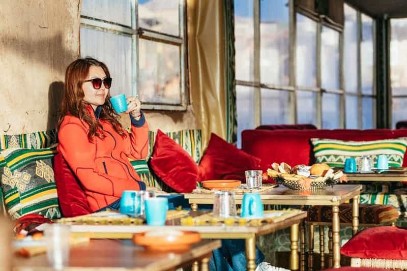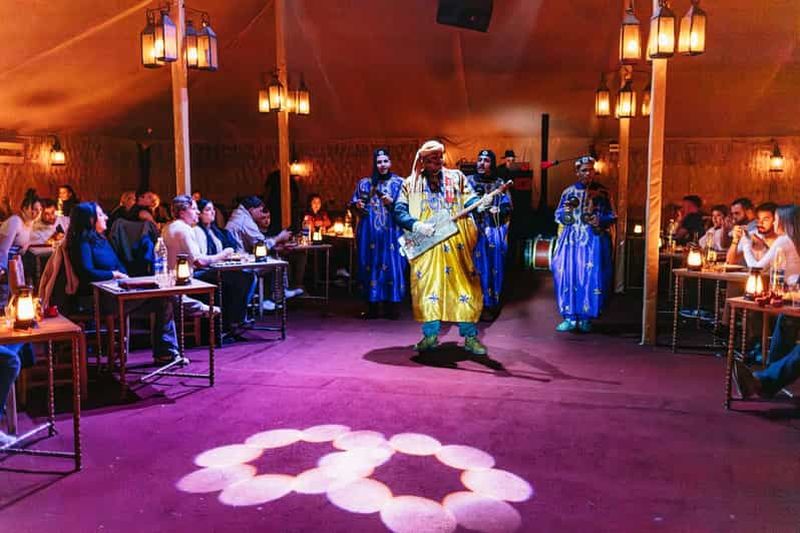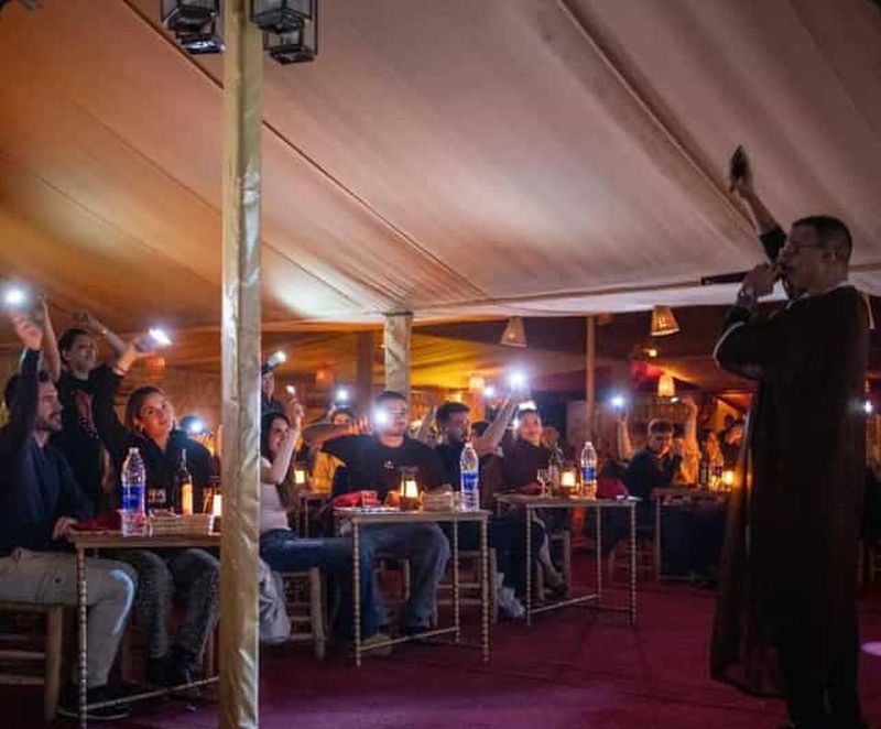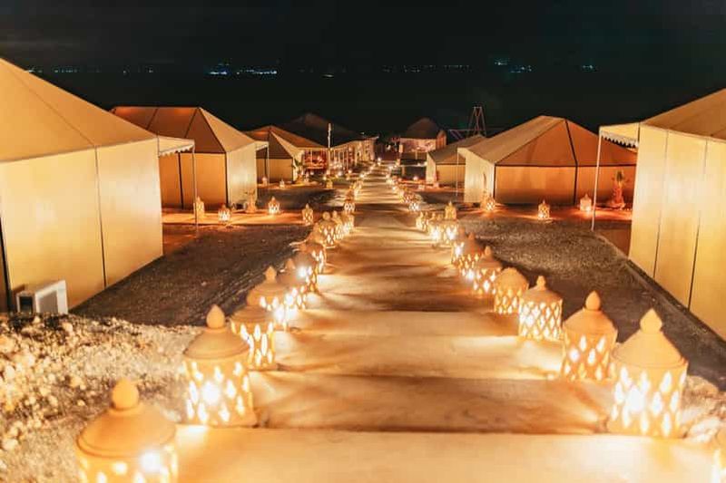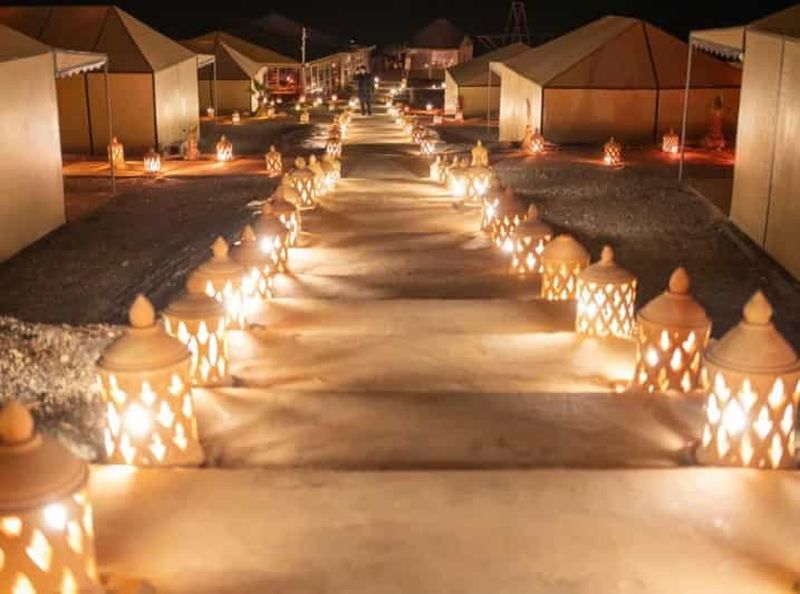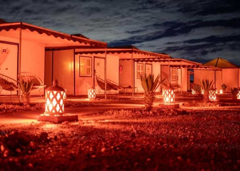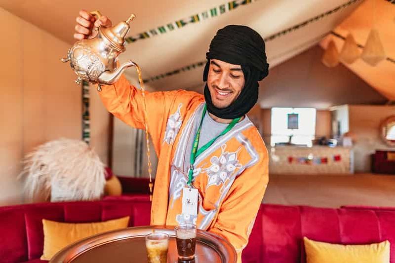Veuillez sélectionner cette option pour passer la nuit dans une tente de luxe climatisée, dotée d'une salle de bain privée et d'un lit confortable. Elle comprend également un dîner à trois plats et un petit-déjeuner berbère.