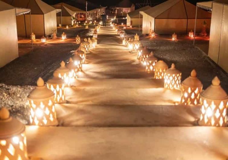Dormez dans un campement sous les étoiles lors d'une excursion de nuit dans le désert d'Agafay au départ de Marrakech. P...