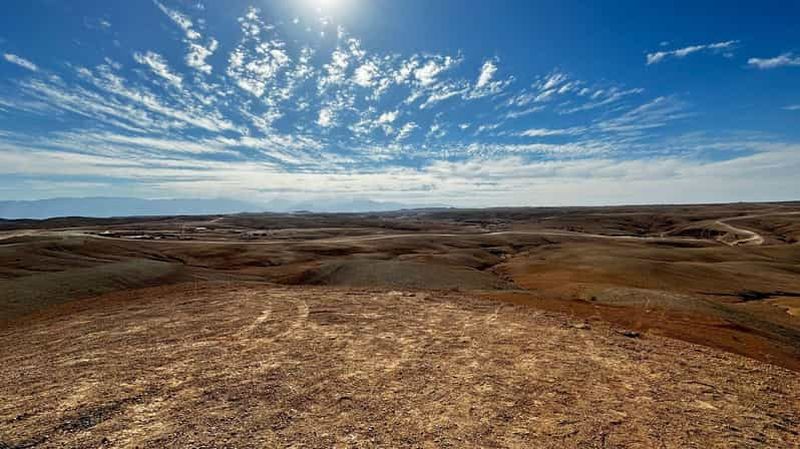 Le magnifique désert d’Agafay près de Marrakech est une merveille naturelle, autrefois utilisé pour l’agriculture par les tribus locales. Bien que moins connu que le Sahara, il propose une expérience unique avec ses paysages arides et rocheux. Aujourd’hui, le désert d’Agafay attire de nombreux visiteurs grâce à ses activités, comme des balades à dos de chameau. Achetez vos billets pour une visite inoubliable afin de découvrir la culture et l’histoire fascinantes de cette région envoûtante.