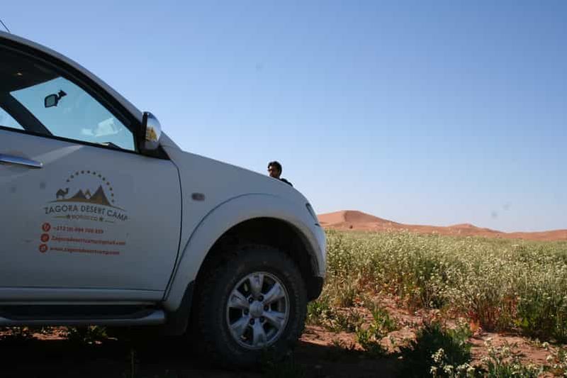 Une randonnée en 4×4 dans le désert vous fera explorer des zones reculées du désert de Zagora en toute sécurité. Les véhicules tout-terrain franchissent aisément dunes et pistes caillouteuses, procurant un aperçu varié des paysages. Vous traverserez des étendues sauvages, découvrirez de petits villages et ferez étape pour contempler des panoramas époustouflants. Guidés par des chauffeurs expérimentés, vous bénéficierez d’informations sur la faune, la flore et les nombreuses traditions locales.