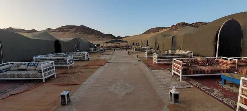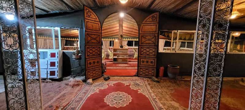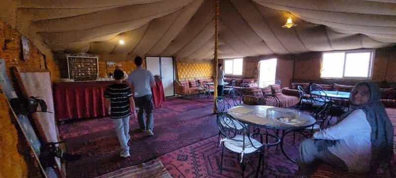 Hébergement de luxe dans le désert : tente privée avec toilettes et douche privées dans votre tente. Avec cette visite privée, vous avez également la possibilité de visiter Ait Ben Haddou ou de retourner à Marrakech au lieu de Ouarzazate.