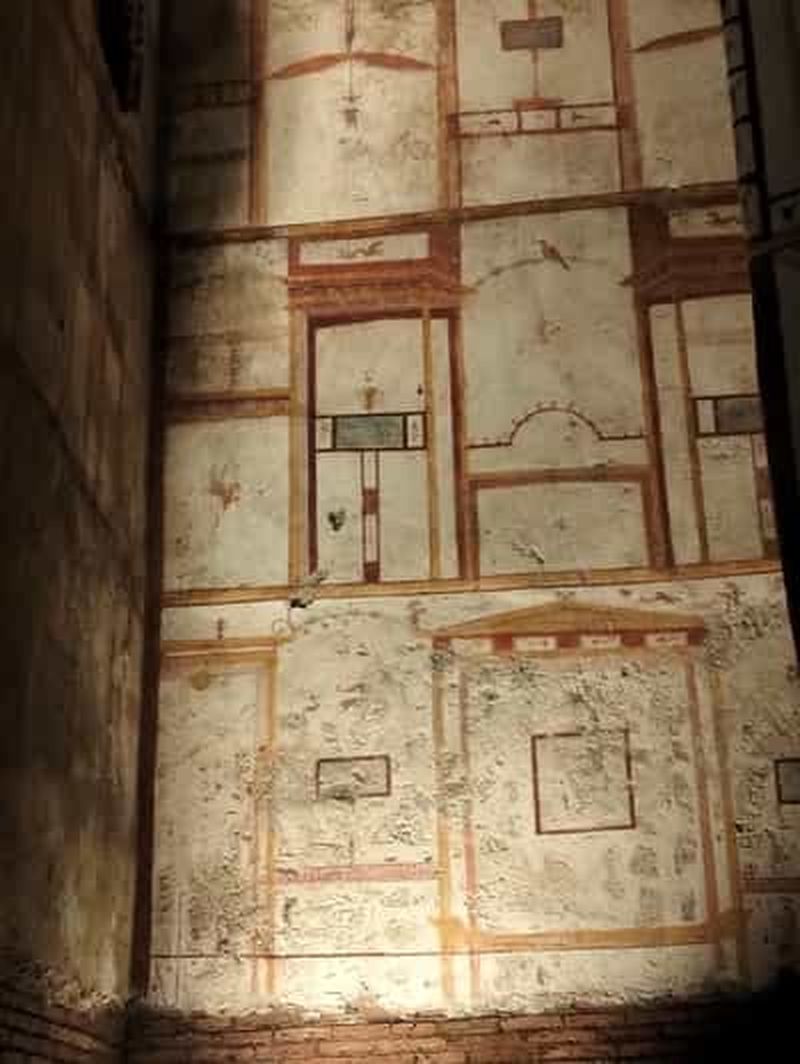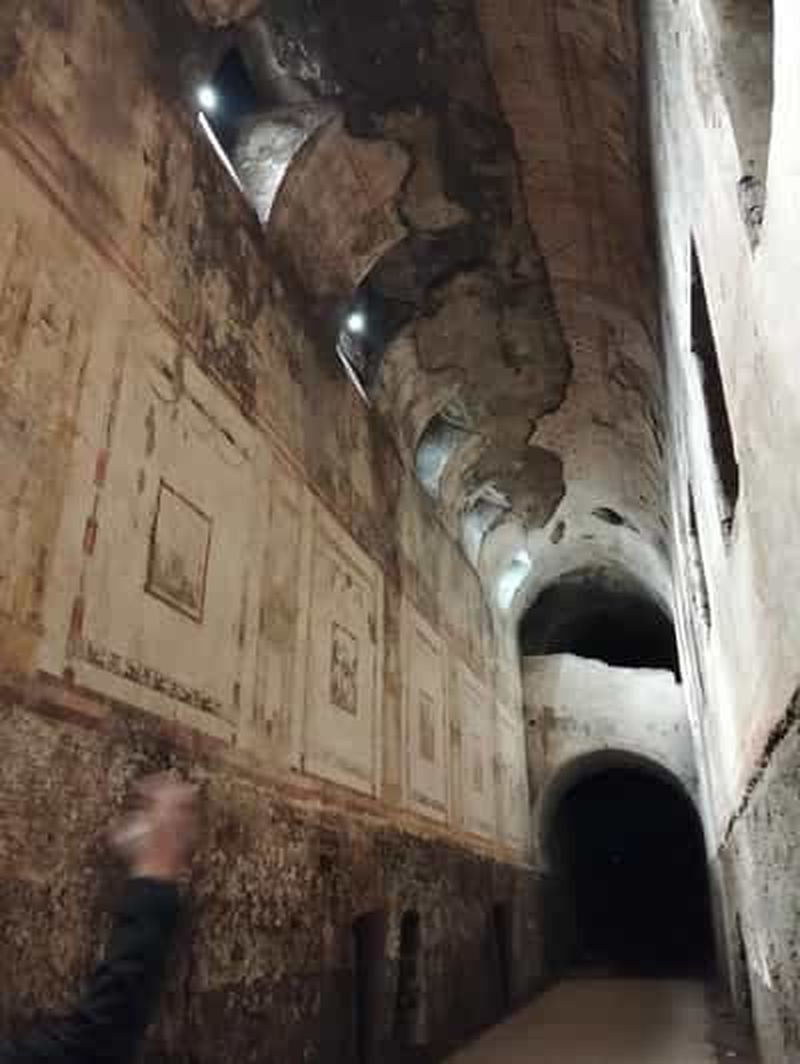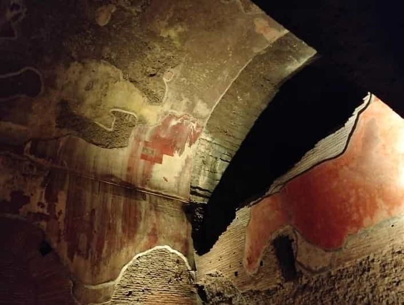 La promenade se poursuit dans une succession de salles ornées de fresques, souvent attribuées au peintre Fabullus et son atelier. Réalisées dans le « quatrième style » pompéien, ces œuvres dépeignent des scènes mythologiques et des architectures en trompe-l’œil. Malgré les siècles d’enfouissement, certains pigments conservent leur vivacité, offrant un aperçu rare de l’ambiance colorée et théâtrale qui caractérisait la demeure de Néron.