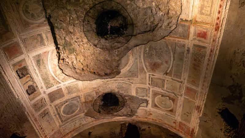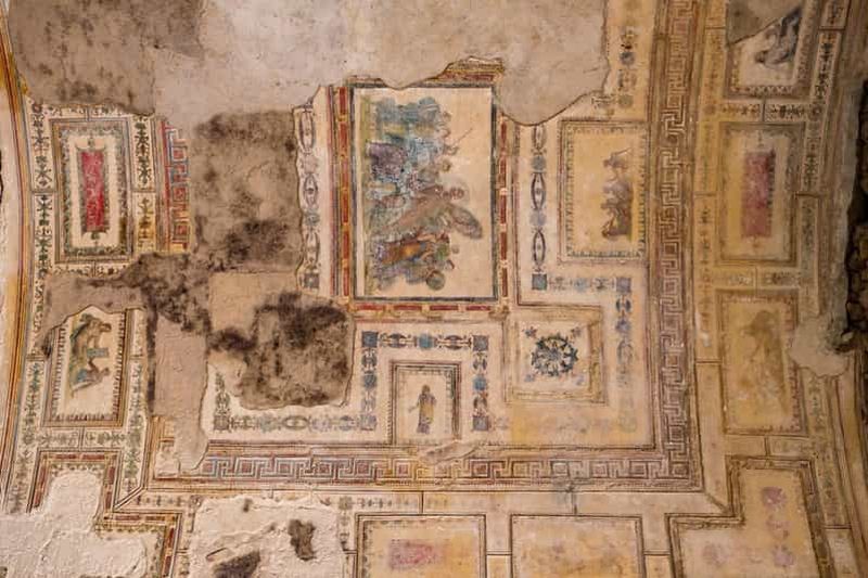 La promenade se poursuit dans une succession de salles ornées de fresques, souvent attribuées au peintre Fabullus et son atelier. Réalisées dans le « quatrième style » pompéien, ces œuvres dépeignent des scènes mythologiques et des architectures en trompe-l’œil. Malgré les siècles d’enfouissement, certains pigments conservent leur vivacité, offrant un aperçu rare de l’ambiance colorée et théâtrale qui caractérisait la demeure de Néron.