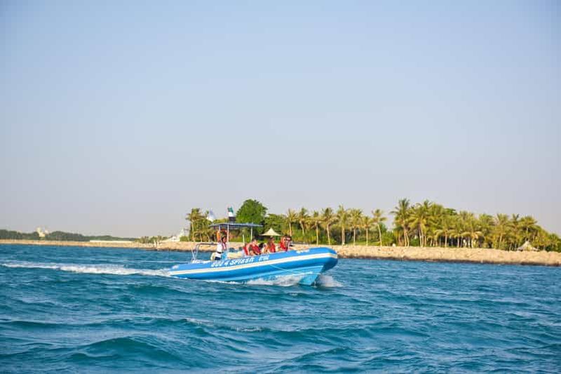 Faites une visite touristique palpitante de 90 minutes en bateau rapide autour des sites côtiers de Dubaï. Choisissez pa...