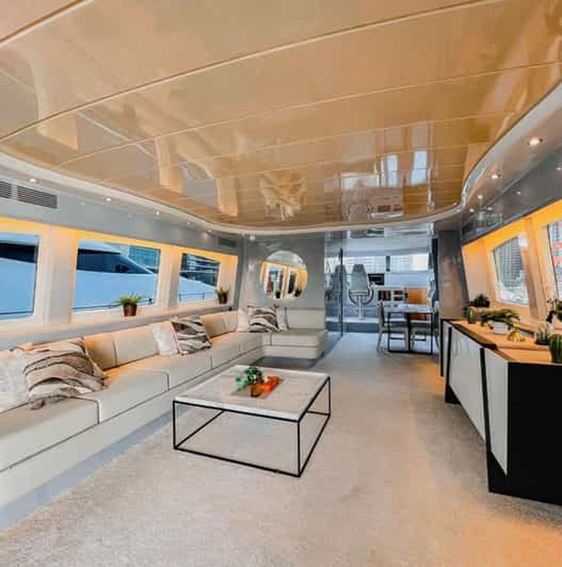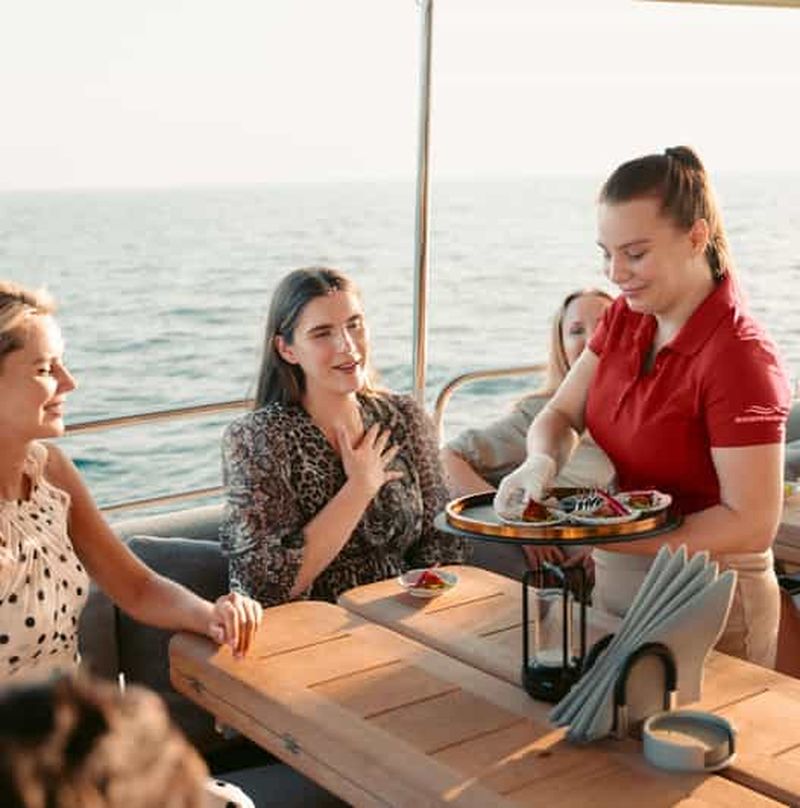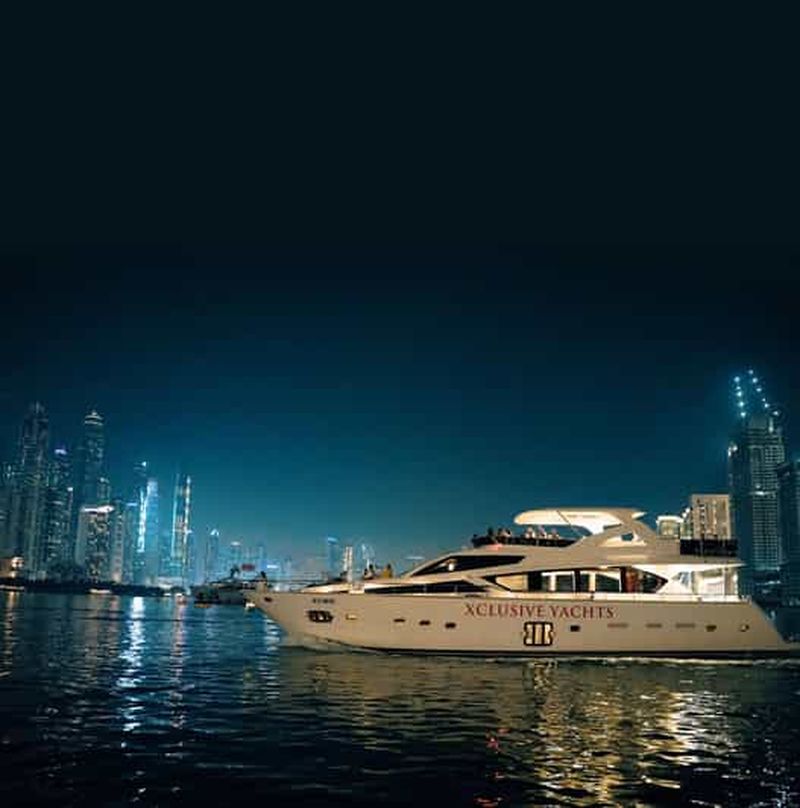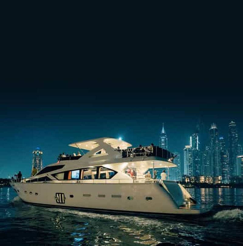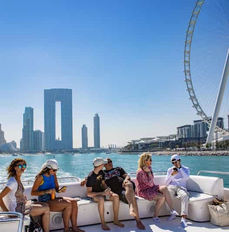 Explorez la ligne d'horizon de la marina de Dubaï lors d'une visite guidée sur un yacht de luxe. Passez devant des lieux d'intérêt tels que le canal de la marina de Dubaï, Ain Dubaï, la Jumeirah Beach Residence et le port de Dubaï, avec boissons tropicales et eau incluses. Veuillez noter qu'aucune nourriture n'est disponible lors de la visite d'une heure.