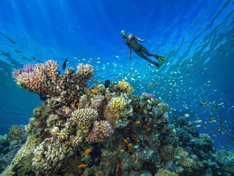 Plongez dans les meilleures activités aquatiques à Dubaï et dans l’émirat voisin de Fujairah : plongée sous-marine, snorkeling en mer ou en lagon, kayak transparent… Selon l’excursion choisie, vous nagez au large de Fujairah, Dibba Al-Fujairah ou Khorfakkan, explorez des récifs coralliens colorés, observez tortues, raies, requins de récif et poissons tropicaux, ou flottez au-dessus d’un lagon abritant jusqu’à 65 000 animaux marins. La plupart des sorties durent entre 3 heures et une journée complète.