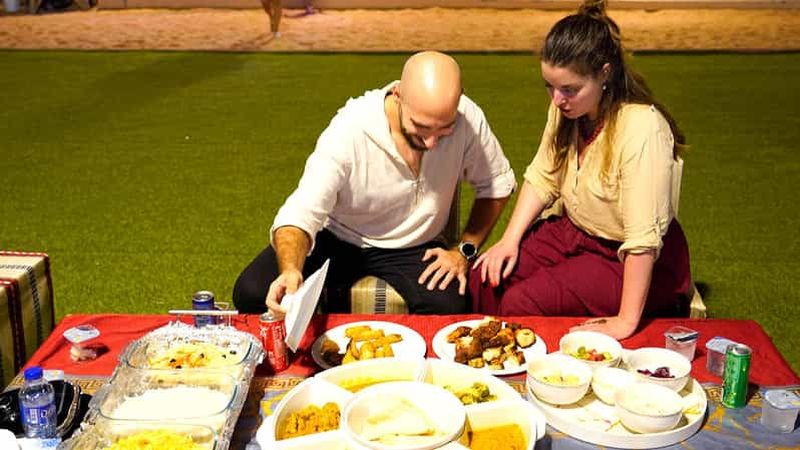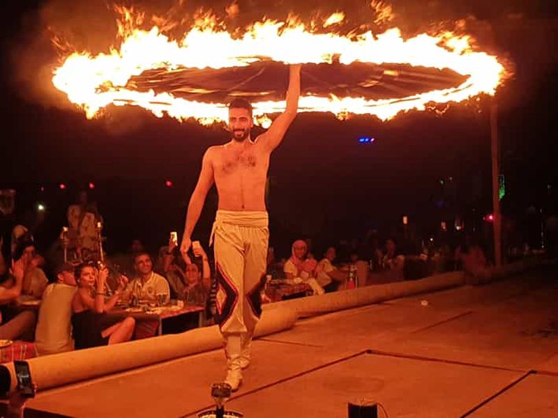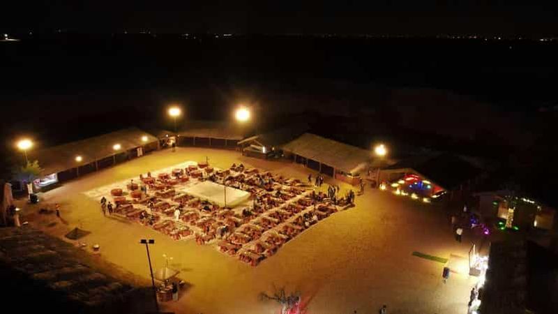 60 minutes de safari dans le désert en buggy des dunes 1000cc + 15 à 20 minutes d'expérience de planche à voile dans le désert + expérience de balade à dos de chameau + divertissement et dîner dans le camp du désert + prise en charge et retour en commun.