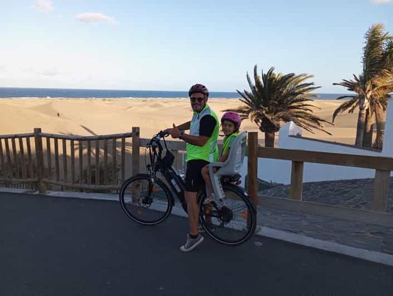 Petit tour de ville : Vous visiterez les meilleurs endroits de Playa del Ingles et des dunes de Maspalomas sur un vélo électrique. Dans cette option d'une heure, les enfants âgés de 0 à 6 ans et d'un poids maximum de 22 kg peuvent participer au tour en utilisant le siège de vélo pour bébé.