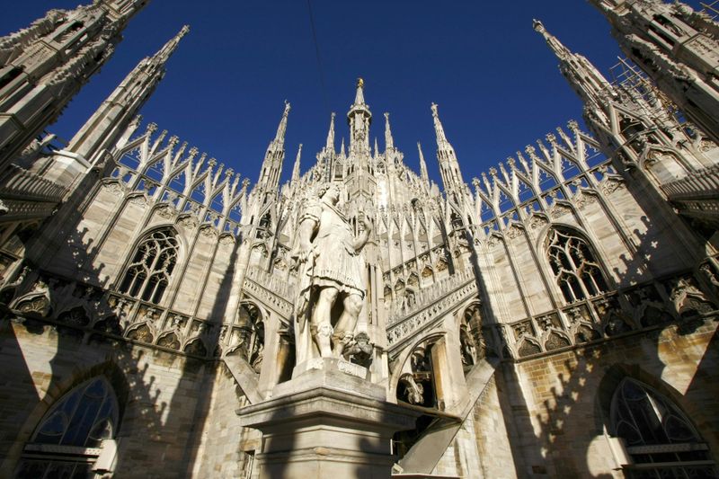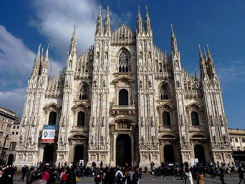 La façade du Duomo de Milan témoigne de la complexité du projet, avec ses traces de siècles d’architecture et de sculptures italiennes