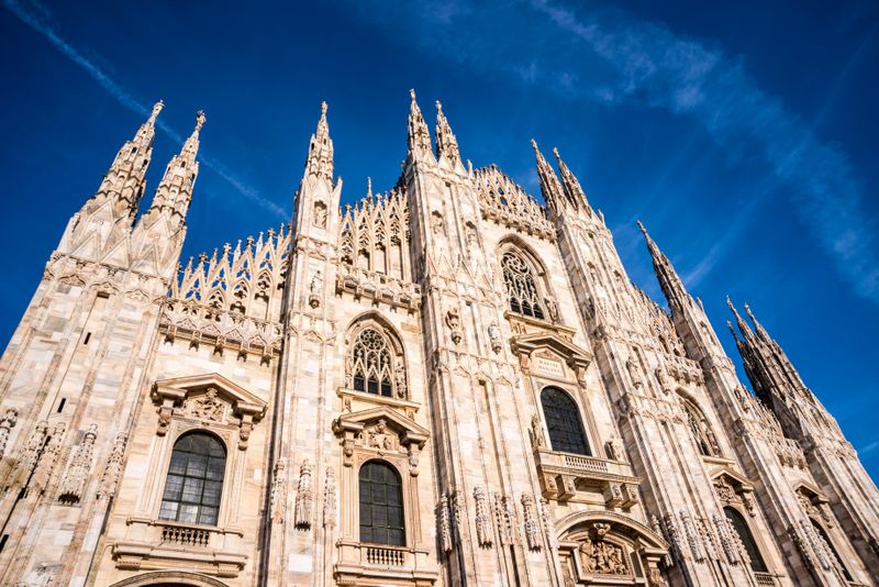 Bien que les éléments majeurs de l’édifice aient été en grande partie achevés au début du XVIIe siècle, le Duomo demeure l’un des monuments les plus symboliques de Milan. Long d’environ 158 mètres et pouvant accueillir plus de 40 000 fidèles, il est souvent considéré comme la plus grande cathédrale d’Italie (la Basilique Saint-Pierre, plus vaste, se situant dans l’État du Vatican et n’étant pas une cathédrale). Sa célèbre façade en marbre blanc, ses centaines de flèches et ses 3 400 statues en font une merveille à explorer. Le monument incarne l’âme de la ville et continue d’attirer des millions de visiteurs chaque année, amoureux d’histoire, d’architecture et de culture.