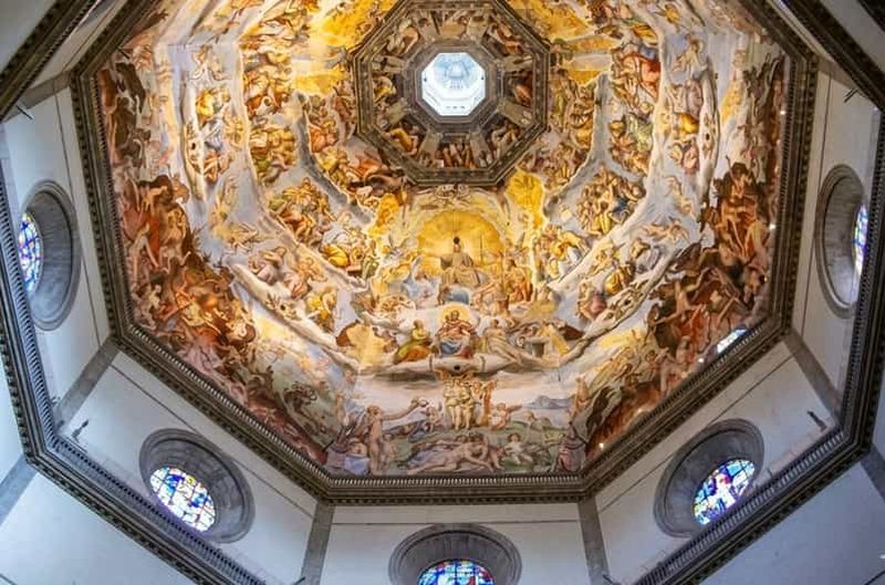 L’intérieur du dôme est orné de la fresque monumentale du Jugement Dernier, commencée par Vasari et achevée par Zuccari. Cette immense représentation inspire fascination et réflexion par sa profondeur dramatique. Approchez ce chef-d’œuvre pour admirer la finesse des détails et la vibrance des couleurs, qui racontent des histoires intemporelles. La grandeur de cette fresque captive tous les spectateurs.