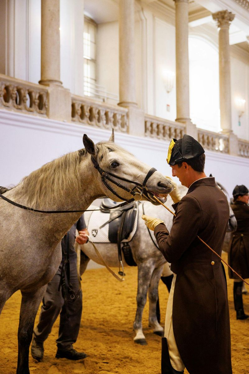 La séance matinale est l’occasion d’observer le travail quotidien des cavaliers et de leurs Lipizzans. Entre 10 h et midi, vous assisterez à des exercices de dressage, à des mouvements d’assouplissement et parfois à de brefs moments de haute école. Les chevaux, en phase d’apprentissage ou confirmés, progressent à leur rythme sous l’œil attentif des maîtres-écuyers.