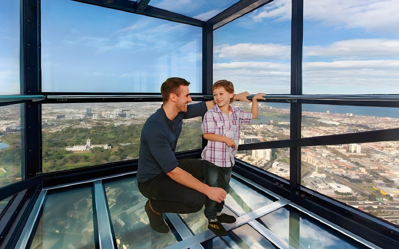 La plateforme d’observation culmine à près de 285 mètres, offrant une vue circulaire sur Melbourne. Inauguré en 2007, ce point de vue vous révèle aussi bien la Skyline urbaine que la baie de Port Phillip. Grâce aux immenses baies vitrées, vous êtes immergé dans un spectacle grandiose et spectaculaire, embrassant ponts, gratte-ciel et jardins environnants. Il s’agit incontestablement d’un moment absolument privilégié pour admirer la ville sous tous ses angles.